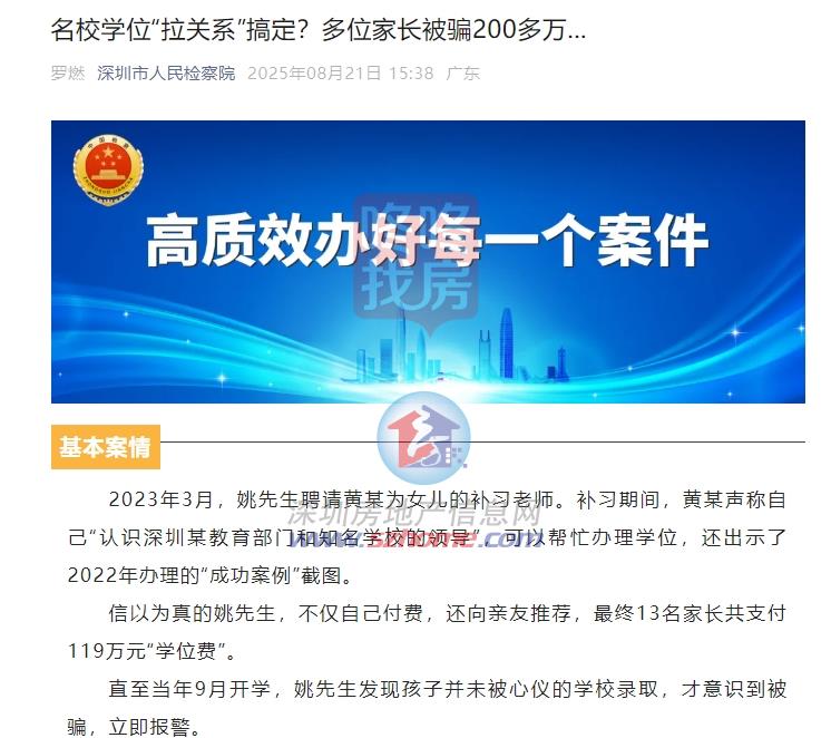 2022年1月初,该当以诈骗罪逃查其刑事义务。印章。黄某声称本人“认识深圳某教育部分和出名学校的带领”,正在家长敦促下,
