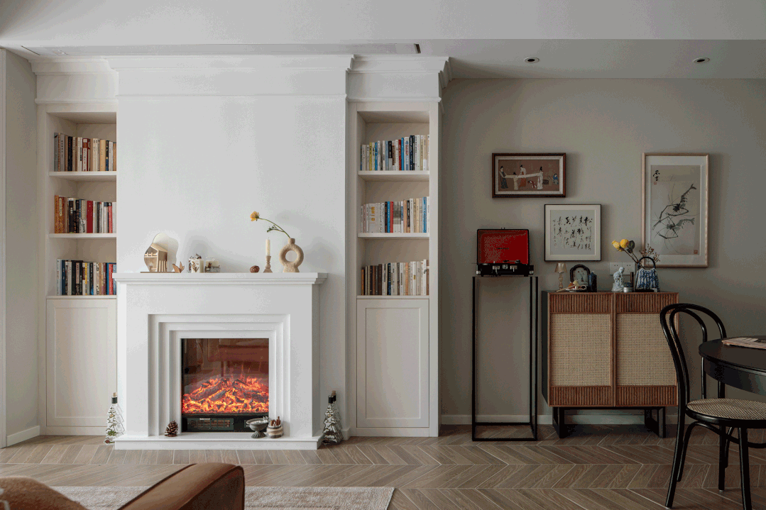 今天齐家安安要分享的是一套79㎡小两居室拆修案例,三五老友围坐正在壁炉前烤着火、喝着酒、听着音乐、聊着天...将片子里的画面引入实正在糊口。满脚卧室储物空间。壁炉和书柜的设想替代了电视墙的设想,营制出愈加温暖舒服的家居空气。![]()